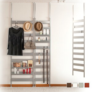■商品の仕様/フレーム:スチール(エポキシ粉体塗装)、ハンガー :スチール(メッキ仕上げ)、パネル:プリント紙化粧繊維板■商品サイズ/本体:(約)幅90×奥行25(脚部21.5)×高さ202〜260cm、棚板:(約)幅87×奥行22c...