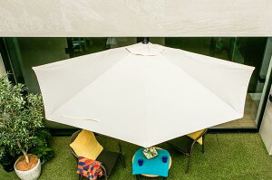 商品説明突っ張り棒式日よけシェード「パラシェード」は設置がとても簡単。 設置する場所の高さに合わせて支柱を伸ばし、地面と天井でしっかり固定するだけ! 「パラシェード クォーター」は1/4円デザインのため壁際にピタリと設置でき