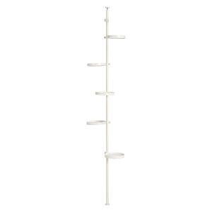 オシャレなディスプレイや小物収納に。突っ張りタイプなので賃貸でも使えるポールラック 丸型/ホワイト×ホワイト (約)幅43×奥行43×高さ187〜264cm ■組立式 フレーム:スチール、棚板:メラミン樹脂化粧繊維板 中国製