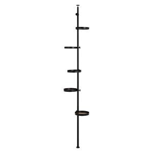 オシャレなディスプレイや小物収納に。突っ張りタイプなので賃貸でも使えるポールラック 丸型/ブラウン×ブラック (約)幅43×奥行43×高さ187〜264cm ■組立式 フレーム:スチール、棚板:メラミン樹脂化粧繊維板 中国製
