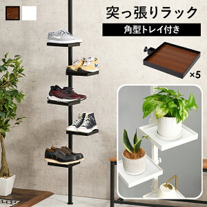 【突っ張りポールラック 角型トレイ&フックセット】 オシャレなディスプレイや小物収納に最適。 突っ張りタイプなので賃貸でも使えるポールラック。 狭いスペースにも設置できるスリムデザイン。 こちらの商品はお客様組み立て商品で