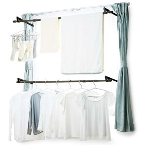 【商品説明】日当たりの良い窓スペースを有効活用、窓枠に簡単に取付けできます。専用の伸縮竿2本付き、上下2段にたっぷり干せます。リビングでの部屋干しにも違和感のない清潔なホワイトカラー。高さ263cmまでの天井にも取付けできます