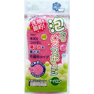 泡立つバススポンジ ナイロンキズを付けずに湯アカを落とします。洗剤が素早くスポンジ全体にいきわたり、穴から均等に泡が出て、豊かに泡立ちます。穴あきウレタンにより少量の洗剤で泡立ちます。ジェル洗剤に最適です。個装サイズ(