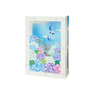 紙/プレゼント/ギフト/贈り物/可愛い贈ってももらっても楽しいかわいいグリーティングカードこちらは立体カードアジサイの奥行きや、ツバメが飛んでいる空中感を、3層の重なりと透明素材で