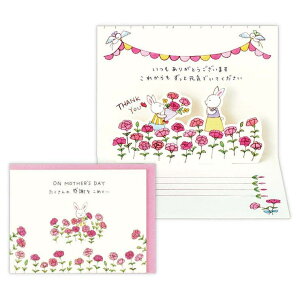 贈ってももらっても楽しいグリーティングカード感謝/お礼/かわいい/プレゼント/ギフトカーネーションの花畑でウサギの親子が感謝の気持ちを届けてくれます贈ってももらっても楽しいグリーティングカードこちらは母の日に大切な想いを伝