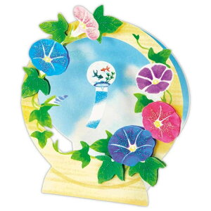 夏空に映える風鈴を鮮やかな朝顔で大胆に囲んだ立体カードプレゼント/ギフト/贈り物/手紙/かわいい爽やかな夏空の背景に、金魚柄の可愛らしい風鈴が映える立体カード。ラメ加工のおしゃれなダイカットカードです...