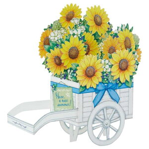 ンテリア/手紙贈ってももらっても楽しいかわいいグリーティングカードこちらは立体ダイカットカードワンタッチでヒマワリが5層の立体になる、花車のダイカットカ