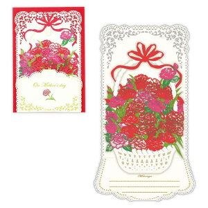 贈ってももらっても楽しいグリーティングカードプレゼント/ギフト/手紙/お礼/感謝花かご入りのカーネーションをレーザーカットで細やかに表現したゴージャスなカード贈ってももらっても楽しいグリーティングカードこちらは母の日に大切