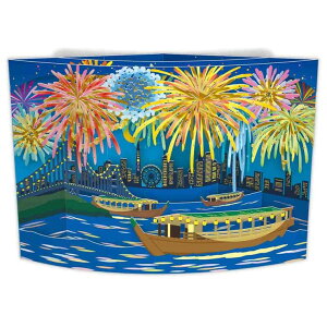 夏の風物詩・花火と屋形船を描いた情緒たっぷりの立体カード贈り物/手紙/かわいい/プレゼント/ギフト夜空を彩るカラフルな花火と屋形船をダイナミックにデザインしました。カーブ型の形状なので奥行きある構造が楽しめます...
