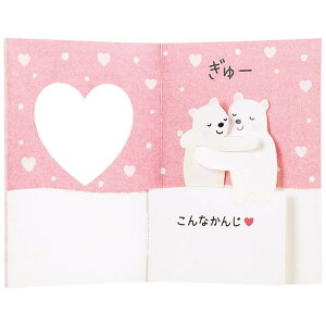 贈ってももらっても楽しいメッセージカード可愛い/お手紙/ギフト/贈り物/プレゼント贈ってももらっても楽しいかわいいグリーティングカードこちらは二つ折りポップアップカードハートの窓の中に目を閉じたシロクマが2匹カードを開くと