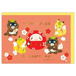 贈ってももらっても楽しいメッセージカードかわいい/ポップアップ/プレゼント/ギフト/手紙たぬきときつねがお地蔵さんにご挨拶贈ってももらっても楽しいグリーティングカードこちらは可愛い[グリーティングカード]きつねとたぬきのサプ