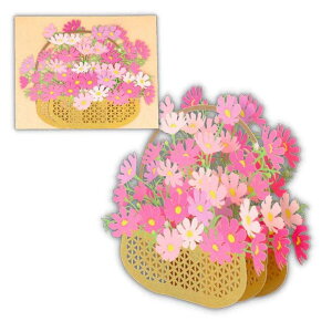 秋に贈るのにぴったりな可愛いポップアップカード多目的/かわいい/プレゼント/ギフト/手紙花かごに入ったコスモスを細やかなレーザーカットで繊細に表現しましたこちらは秋のご挨拶にぴったりな[グリーティングカード]ホールマークなら