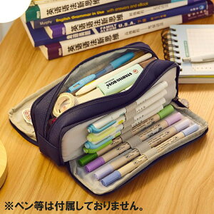 大容量のペンケースです。消しゴム、付箋、ハサミ、定規、メジャー、修正テープなどの小物もたっぷり収容できます。両面収納デザインなので、筆記具などと分けて収容できるので、小物が探しやすく汚れにくいので安心です。おしゃれな