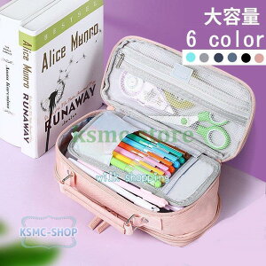 大容量&多機能?使い勝手抜群のペンケースです!■文房具をまとめて収納可能! ペンはもちろんのこと、分度器やはさみなども収納できて持ち運び楽ちんです◎■仕切り&ペンホルダー付き! 3つのポケットとペンホルダー付きで、大容