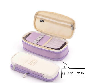 修正テープなどの小物もたっぷり収容できます。 ※収容数はペンの種類によって異なります。 【ペンが探しやすい】前のファスナーを開ければ、見開き式になるので、中身が見やすく、消しゴムや修正テープなど、小さいものも取り出しやすく便利です...