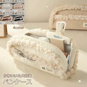 ペンケース 筆箱 大容量 もこもこ ボア コーデュロイ 可愛い 仕