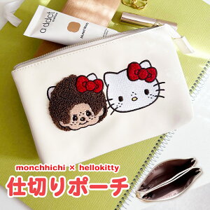 仕切り付きポーチ ポーチ コラボ モンチッチ サンリオ Wフラットポーチ おしゃれ レディース コスメポーチ ふわふわ ファスナー 整理 整理しやすい
