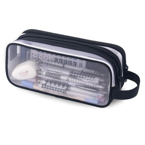 【透明ペンポーチで収納上手】透明メッシュだから中身がひと目でわかり、取り出しもスムーズ。約50本のペンが入る大容量で、文房具の整理にぴったりな軽量ポーチです。【使い方いろいろ便利ポーチ】ペンケースだけじゃなく旅行ポーチ