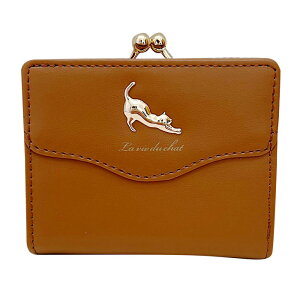 二つ折りがま口財布 ねこ プレート レディース財布 ミニ財布 かわいい 新作 猫 学生 社会人 贈り物 おさいふ 財布 シンプル 小さめ