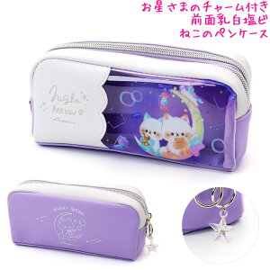 毎日持っていく筆箱(ペンケース)はやっぱりかわいくなくっちゃね☆ 入っているえんぴつやシャープペンや消しゴムも喜ぶよ♪ いつも机の上に置いておくモノだからお気に入りを選びたい!きらめく星と夢見る夜空、ふたつの猫があなた