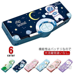 鉛筆削り付き多機能筆箱。両面開きで使いやすいボックス型筆箱。スリムで軽量なのにたっぷり収納できちゃうのが嬉しい♪たっぶり収納できる2ドアタイプ!表側には、細めから太めの鉛筆、丸軸・三角軸・六角軸どのタイプの鉛筆にも対応