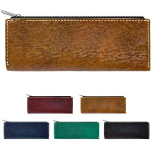 ペンケース 革 薄型 本革 コンパクト スリム 筆箱 ペン入れ 筆入れ シンプル 高級 ステーショナリー メンズ 牛革 YKKファスナー使用 男の型押し