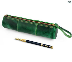 ペンケース 革 ファスナー 筒型 三角形 S字型 ストラップ ソフト レトロ おしゃれ シンプル オフィス 学生 緑 赤 青 プレゼント 誕生日 記念品素材: レザー
