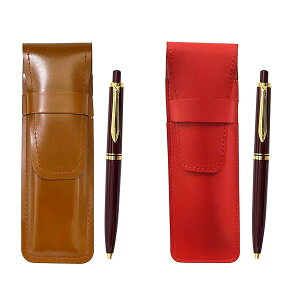 2セット入り 牛革ペンケースとボールペン(黒軸)のセット 日本製ペンケース(赤) 材質:牛革 サイズ:155mm×50mm×15mm ペン 材質:樹脂 サイズ:全長130mm×軸径9mm OPP袋入り