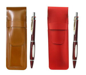 日本製牛革ペンケース赤1個・茶1個とボールペン(赤軸)2本のセット ペンケース(赤・茶)材質:牛革サイズ:155mmx50mmx15mm ペン材質:真鍮サイズ:全長139mmx軸径9mm