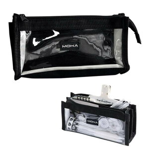 Doyime ペンケース 筆箱 大容量 多機能 透明 シンプル おしゃれ 筆入れ 小物収納 男の子 女の子 子供 小学生 中学生 高校生 大学生 黒 ブラック(黒と白のロゴがランダム)【透明窓】このペ...