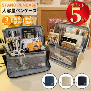 小物を分類できるメッシュポケット付きペン類が約50本以上入る大容量デザインメインファスナーがぐるりと大きく開くふせんや定規などを分けて収納できるポケット付き化粧ポーチとしても有効活用可能 ●製造ロットにより、細部形状の違