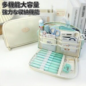 商品仕様 商品名:大容量ペンケース 容 量:ペン類約60本収納 材 質:ポリエステル カ ラ ー:ベージュ、ブルー、ピンク、グリーン ・8段階分類設計: ・メッシュポケット×6:消しゴム・付箋など小物を可視化管理 ・太軸対応ペンス