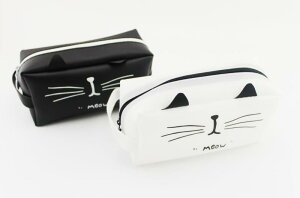 2色セット かわいい 白 黒 にゃんこ の 大容量 ペンケース ねこ 猫 ホワイト ブラック 化粧ポーチ にもかわいいにゃんこの顔をデザインした白&黒のペンケースです表面は汚れの付きにくい素材を使用しており...