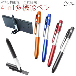 4つの機能を一つに搭載! ボールペン、LEDライトライト、タッチペンを搭載した4in1の多機能ペン! 普通のボールペン+αとしてご使用できます。 ペン本体中央部は折り曲げることができ、スマホスタンドとしてもご使用できます。 商品仕様 機