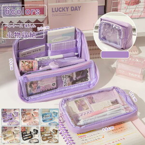 クリアポケット付きの大容量ペンケースです♪ ファスナー式で広く開けられるので 取りやすいデザインになっております。 フタの内側の部分にはメッシュポケットで小物なども入れられます。 【サイズについて】 画像をご参