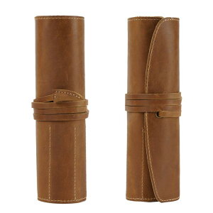 ・スタイル: カジュアル・主な素材: レザー・柄: 無地・タイプ: ロールアップ式ペンケース・形状: 円形・硬度: ややソフト・対象: ユニセックス・カラー展開: ブラック、コーヒー、ブラウン、ワインレッド、ダークグリーン、ブルー