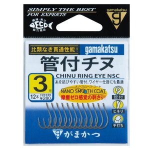 がまかつ管付チヌ ナノスムースコート◆品番:68-764★オールラウンドタイプのチヌ鈎の形状で、ビギナーでもハリスを結びやすい「管付」。タチウオ狙いのワイヤー仕掛にも好適です。様々な釣りに使用出来る「管付チヌ」にナノスムース