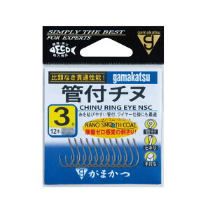 入本数:12 号数:3号 オールラウンドタイプのチヌ鈎の形状で、ビギナーでもハリスを結びやすい管付。タチウオ狙いのワイヤー仕掛けにも好適です。