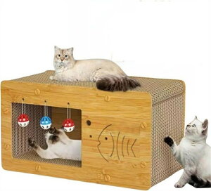 商品名 猫 爪研ぎ キャットハウス 爪とぎ 両用 ベッド 箱式 運動不足改善 木製 猫用 組み立て式 段ボール ストレス解消 省スペース 通気 家具破壊防止 耐久 S M L 家 魚 くま カラー イエロー...