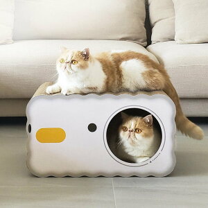 ここからおもちゃを出し入れして猫ちゃんと遊んでも楽しいでしょう。中は広々なので、数匹の猫が同時に入って遊ぶこともできます。ハウスの中で爪を研ぐ姿は見てても癒されます。 【様々な使い道】爪とぎとしてだけでなく、遊び場として、落ち着ける寝...
