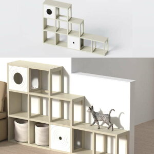 人気のキャットタワー。ねこちゃんハウス♪おしゃれなデザインでインテリアにも◎ 本棚・収納棚としても活用出来ます。組み立て簡単。分解後もコンパクトに収納で引っ越し時も楽々。 さっと拭けてお手入れも簡単。PP素材で水汚れにも強