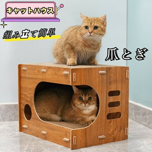 猫 爪とぎ ダンボール ハウス 猫つめとぎハウス キャットハウス 両用 高密度段ボール 猫用 多頭飼う 爪とぎ兼ベッド 段ボール ストレス解消 猫箱 二層 組立簡単 木製 小中型猫 爪研ぎ二枚 両面使え...