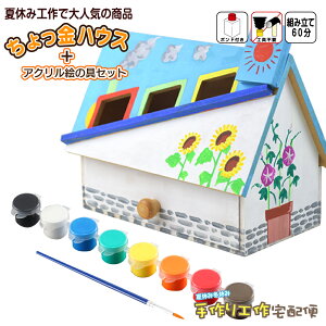 佐川急便またはゆうパック ご購入数 1個まで 2個以上 【貯金箱工作 ちょっ金ハウス+アクリル絵の具8色セット(筆付き)】 自由工作に最適なちょっ金ハウス。 はめ込み加工済みのMDF板で誰でも簡単に短時間制作が可能