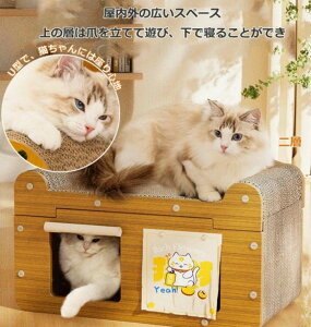 組合簡単【通気性良い】ダンボール製なので、通気性がよく、熱くも寒くもありません、オールシーズンご使用いただけます!【猫ハウス+爪研ぎ】内側外側も爪とぎダンボールなので