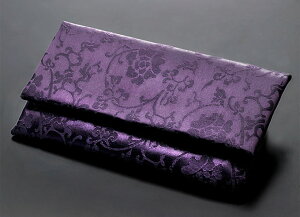 ギフト対応(ラッピング画像) 【 数珠専門店 翔龍念珠堂 お数珠袋 】細い糸で織り上げ光沢のあるジャガード織 古来より人気の高い「牡丹唐草」のモチーフ。どのような場面でも使いやすい紫色を基調にした男女兼用のお数珠袋で