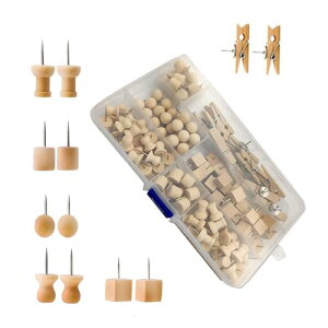 商品説明■ 画鋲 押しピン 後が残らない 画びょう 留め具 コラージュ素材 固定用 美術 オフィス 学習 多機能 装飾 DIY アクセサリ マカロン 収納箱付き (A4) 送料無料 多様なスタイル:6種類の木製ピンを1