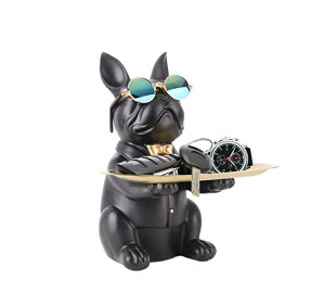 【素材サイズ】ブルドッグフィギュアキートレイ、樹脂です素材、強い安定性、高い耐摩耗性、お手入れ簡単。約17.8x18x23cm、トレイ付きの犬執事像は、犬愛好家に最適です。 複数の用途: 収納オーガナイザーボックスは多用途で、アパート...