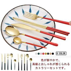 色が鮮やかで、高級とおしゃれが感じられるカトラリーセットです。スプーン、フォーク、ナイフ お箸、デザートスプーンの5点セット。ステンレスを使用、防錆び性、耐久性が優れ、衛生的、安全で長くご使用していただける...