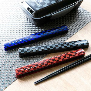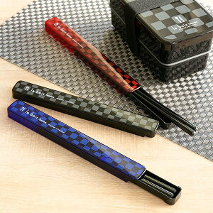 ツールボックスをイメージしたギアっぽいメンズお弁当箱 コミダスシリーズの箸&箸ケースです。 木製箸は、男性の手でも扱いやすい全長19.5センチ。 ケースは少し曲がるので、箸が取り出しやすい。 カチャカチャ音が鳴りにくい
