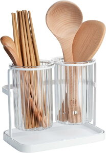 箸立て 水切り 箸置き カトラリースタンド 箸ラック 箸入れ フォーク スプーン 収納 カトラリー 収納 キッチンツールスタンド 箸スタンド 台所収納 水抜き穴付き 卓上 ダブル 半透明 自立式 水受け皿...
